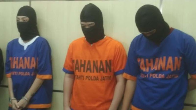 Patroli siber Ditreskrimsus Polda Jatim mengendus aksi ketiga tersangka di media sosial.